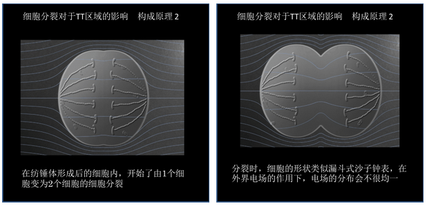 电场疗法的原理细胞程度1 没有发生分裂时,细胞中的电场是均一的。 细胞分裂时,细胞核经过了一个复杂的演变过程形成了有丝分裂(mitosis)和胞质分裂(cytokinesis)。 在有丝分裂的初级阶段,一般主要通过微管(microtuble)的重合,来形成纺锤体(spindle)。 但在电场的作用下,由于微管具有沿着电场排列的特性,因此电场的刺激会阻碍微管重合,同时有丝分裂也将停止。 分裂中期,阻碍构建微管→癌细胞死亡