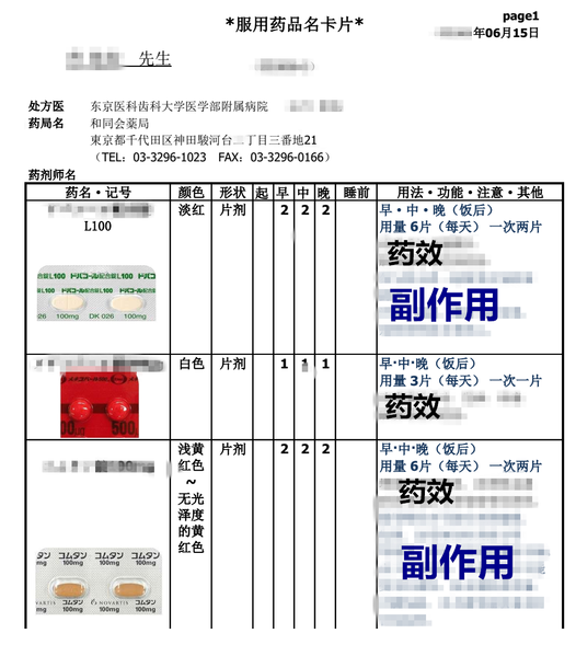 此药单是经过赴日医疗服务机构翻译直接发送给C先生的最终版。我们可以看到的是,日本药单连药物的样子都贴上去了,真的十分人性化。