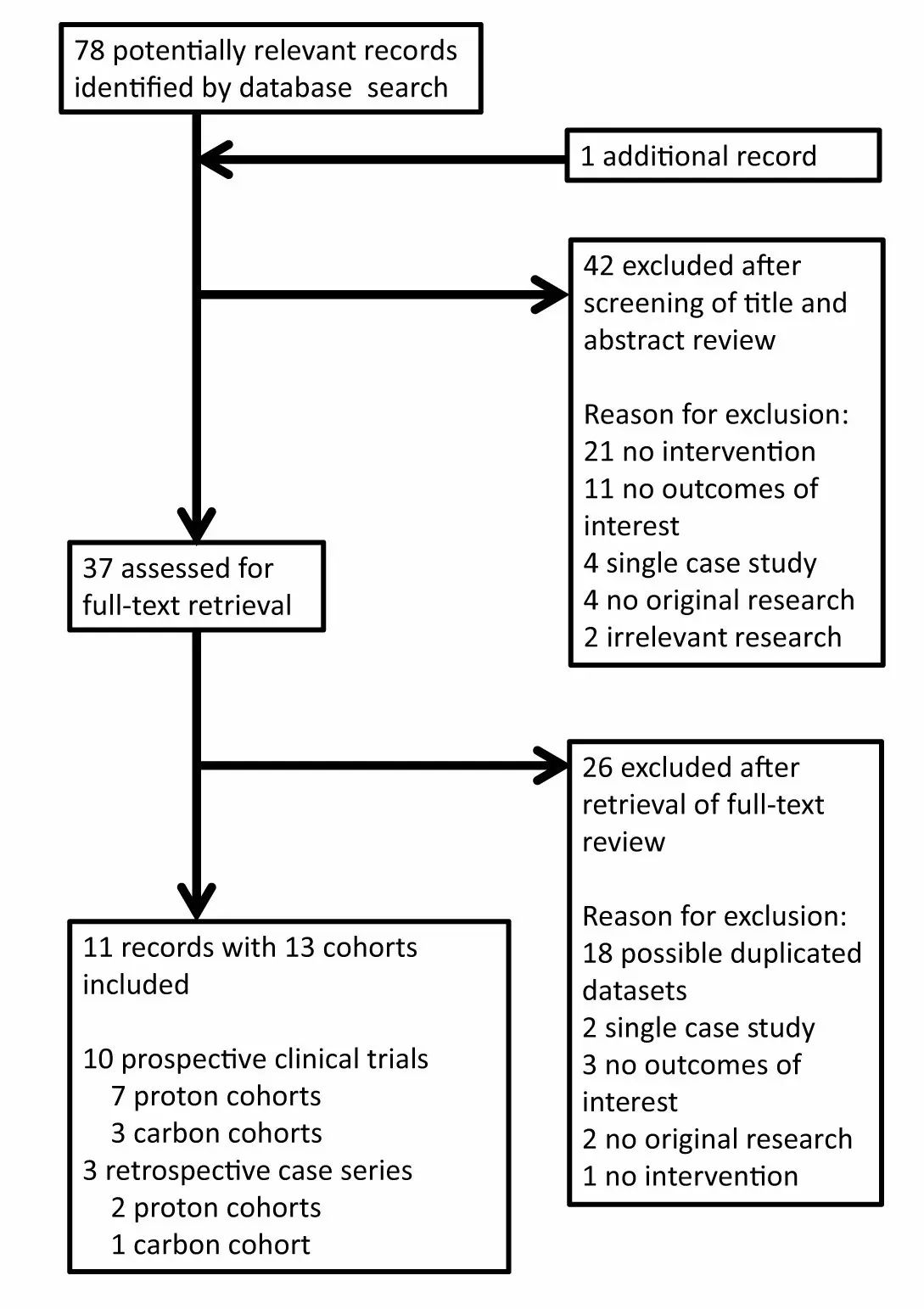 近年来,随着小型化设备的发展,粒子治疗中心的数量在全球范围内都在增加,接受粒子治疗的肝细胞癌(hepatocellular Carcinoma,HCC)患者数量也在不断上升。日本的学者对1983-2016年间发表的HCC粒子治疗相关临床研究进行了回顾性分析,重点关注患者的局部控制率、总生存率和晚期放疗副反应。纳入研究的文献共11篇,包括1个质子治疗与动脉导管化疗栓塞治疗(TACE)随机对照试验、9个I期后II临床试验和2个回顾性研究。文章发表在International Journal of Clinical Oncology上。本文主要分享质子治疗部分的分析结果。