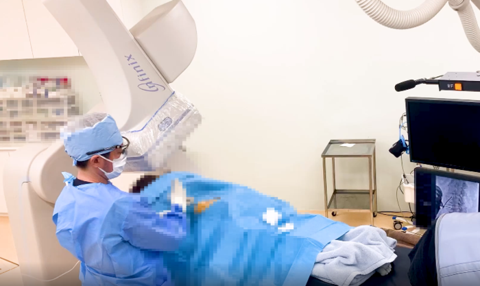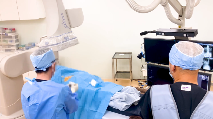 腰椎核磁影像显示腰椎多节椎间盘损伤,椎间盘厚度变薄。(椎间盘退行性病变と椎间盘突出)。并伴有椎管狭窄症 最终治疗DST椎间盘修复再生治疗 治疗了已经损伤的四节椎间盘(L2/L3、L3/L4、L4/L5、L5/S)可期待坐骨神经痛症状的好转。 ![]() 打了镇静剂患者处于沉睡状态(最近希望使用镇静剂的患者增多,使用率在50%左右)图为正在进行麻醉时的场景。
