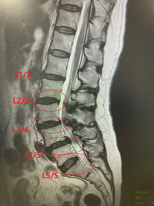 治疗前患者自诉 腰疼有10多年了,但是也不太耽误打网球。腰疼逐渐加重玩了两年的高尔夫也打不了。今年年初开始出现坐骨神经痛,运动都做不了了。附近医院检查是椎管狭窄症,一直保守治疗也没有好转。 检查及诊断结果