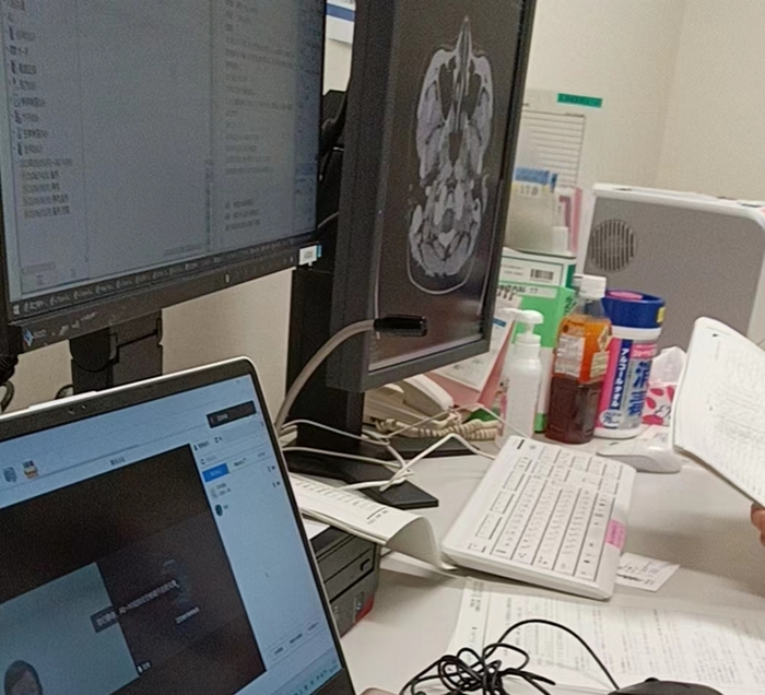 在视频问诊当日,日本院方,患者,我司的三方顺利通过视频连线,岩崎部长首先对患者进行了一些问诊和观察。并与患者家属对于患病以来多次发作时(患者失去意识期间)的症状及表现等详细确认沟通后,给出了评估诊断意见:并未仅是脑神经异常放电引起的癫痫,而是全身性癫痫。