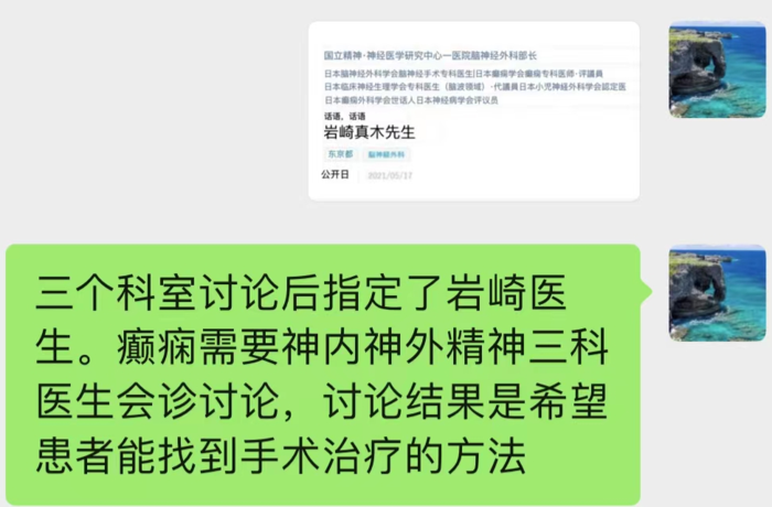 经我司与日本NCNP院方协调沟通及申请,院方多科室沟通后,为患者指定了该院神经外科部长:岩崎 真木 医生,作为视频问诊的主治医生。
