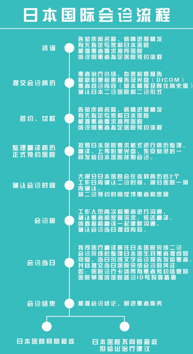 2、准备签证 3、准备外汇 4、出发准备携带相关材料:请携带您的护照、签证、医疗预约证明、旅行保险等相关材料,并确保随身携带您的旅行证件。 5、安排住宿:在日本看病期间,您需要安排合适的住宿;可以选择酒店、公寓或病房附近的民宿。在选择住宿时,请考虑交通便利、周边设施、价格等因素。 6、就诊过程:在约定的时间前抵达医院并办理挂号手续;在就诊过程中,请确保与医生充分沟通,详细描述您的症状和病史。如果需要,可以请一位翻译协助沟通。在诊断和治疗过程中,如有任何疑问,请随时咨询医生或护士。 7、支付医疗费用:在日本,医疗费用通常需要现场支付;请确保您已准备好足够的日元或可以使用的信用卡。部分医院也接受中国银行卡支付,但最好提前了解支付方式以避免不必要的麻烦。 8、领取病历和药物:在治疗结束后,请向医生或护士索要病历和处方药;如有需要,可以请他们为您解释用药方法和注意事项。 以上流程均可由专业赴日就医担保服务机构辅助完成! END 传祺国际健康总部2015年成立于日本,2019年通过日本外务省、经济产业省联合认证,系外务省医疗签证担保机关(编号B-107),经济产业省官方许可中日跨境医疗支援服务企业。 我们团队所做的每一分努力,每一次付出,为帮助更多坚持在抗癌路上的患者,坚强勇敢地抗争癌症的同时,得到国际专家的权威意见建议,为今后治疗指明方向,为获得更好的生存机会而不懈努力! 【传祺国际健康】微信:385180139 上一篇: 日本治疗肝癌5年生存率提高3.5倍!