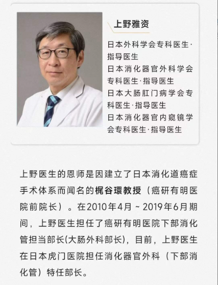 ![]() 肠癌就找日本“外科圣手”上野雅资!晚期肠癌治愈率40%,怎么做到的?